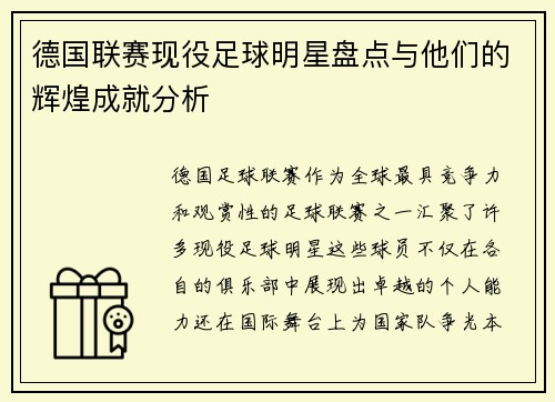 德国联赛现役足球明星盘点与他们的辉煌成就分析