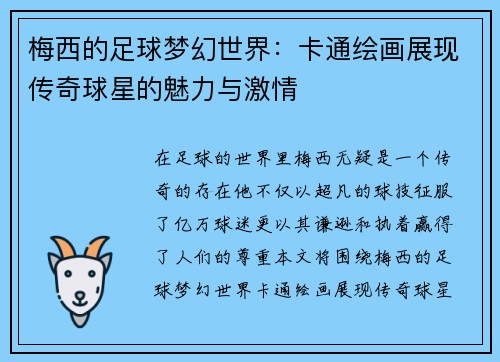 梅西的足球梦幻世界:卡通绘画展现传奇球星的魅力与激情